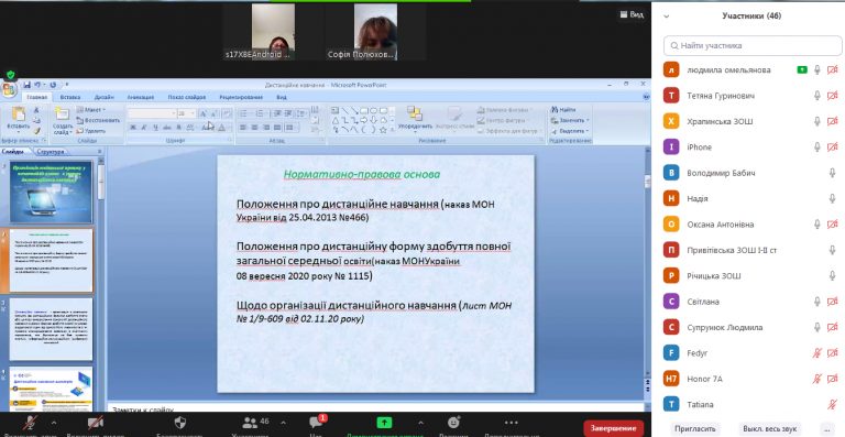 Консультант Омельянова Л.В. ознайомила педагогів із нормативно-правовим забезпеченням з питань організації дистанційного навчання в умовах карантину; акцентувала увагу на важливих аспектах упровадження технологій дистанційного навчання, зокрема: