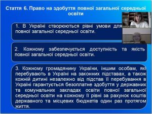 Консультант центру Лідія Вечорко акцентувала увагу освітніх менеджерів закладів загальної середньої освіти на новаціях статей 6 «Право на здобуття повної загальної середньої освіти» та 7 «Заборона дискримінації у сфері загальної середньої освіти» Закону України «Про повну загальну середню освіту».