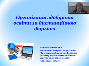 23 грудня 2020 року комунальною установою «Зарічненський центр професійного розвитку педагогічних працівників» в режимі онлайн проведено консультування для вчителів природничих дисциплін «Організація здобуття освіти за дистанційною формою».