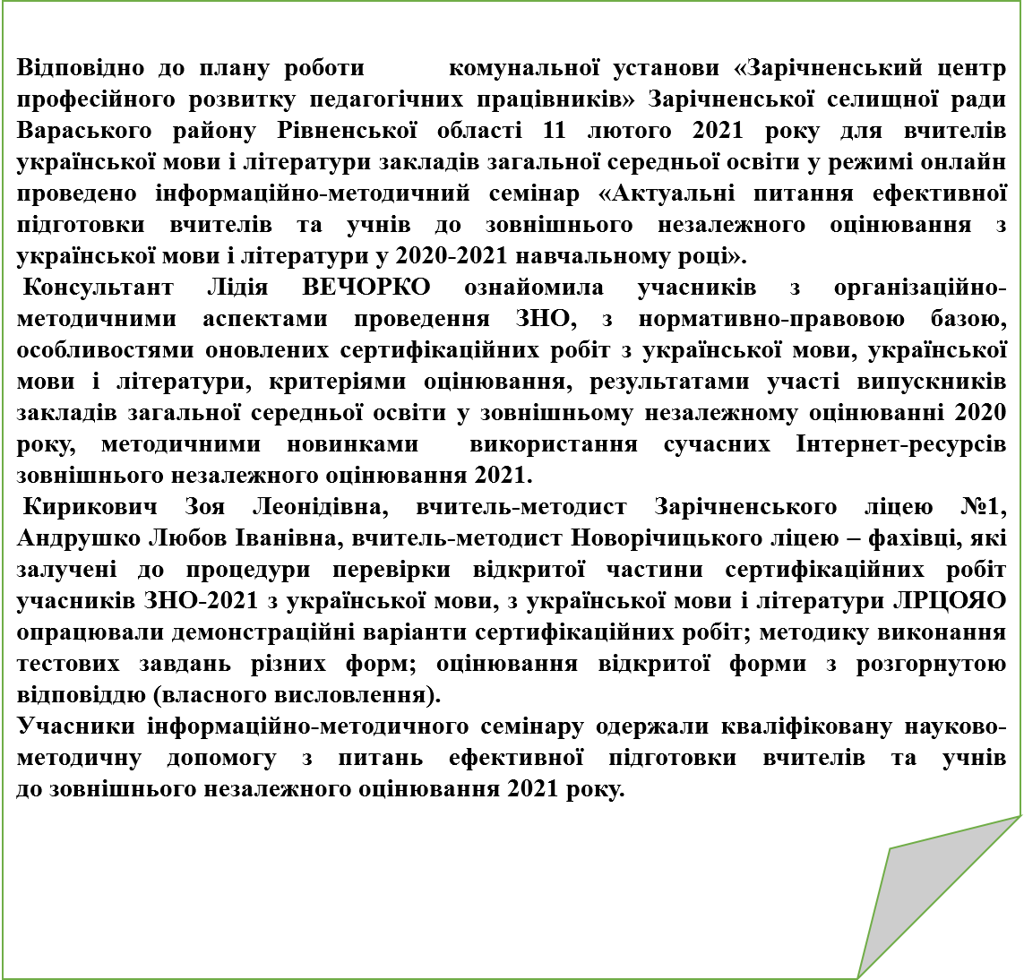 Інформаційно-методичний семінар для вчителів української мови і літератури завантажити матеріали семінару Навігація записів Про проведення управлінського онлайн-консалтингу Вебінар для вчителів природничого циклу